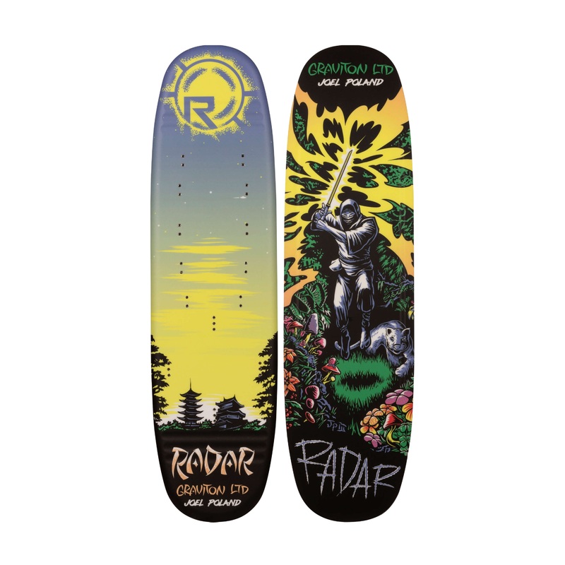 Introducing the Radar Graviton LTD Joel Poland Trick Ski. With every season that passes, we become even more confused about what and who Joel Poland is and where his freakish ability is rooted. Evidence has surfaced revealing a long lineage of Ninja in Joels bloodline. Ninjas are known for devoting their lives to a craft and mastering their skills beyond anyone else. This makes sense as Joel has honed his ability to be the best and push the sport into uncharted waters. Harness the power of the Ninja with the new Joel Poland Graviton. Stay sneaky, Polish.