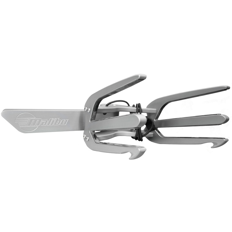 Aluminum Malibu Boats bungee spinning racks. Fits all G3 and G4 towers. Gap between bottom forks is approximately 1" wide. Gap between top forks is approximately 2" wide. Combo fork design can hold one wakeboard (or skim surfboard) and one surfboard. Swive